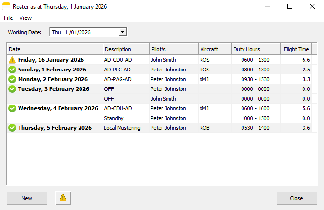 Rostering allows you to quickly and easily schedule upcoming flights.